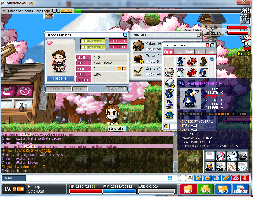 Price check - 14 att 7 str 2 slot Maple Shield - 12 Dex 12 Str 9 slot Blue Armis Thank you