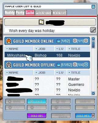 Hi, Milky's here. I've been Royals for 3~4 years and keep going, although I left few times. Since the Genuine server by gamania. (I'm from Taiwan) We all using /find <--this open command a lot I mean a lot is REAL A LOT Cuz we do lots of party quests and their only 20 channels for all Taiwanese player. (I know it's same to all Maplestroy player for whole world. LOL!) Okay,please ignore the above Since I realized that extremely low usage. (AND EVEN CAN'T CLOSE IT JUST PRESS BY ESC BOTTON) Yeah, it made me angry sometimes, LOL! And I know if you double press Guild list like this,you'll open a messenger. (And I finally know messenger is broken now) => And double click on bud list you can whisper to that guy. => But after all, you can contact your bud or guild mate easily by . I think we are always need to find bud's location(ch and map). Just only by double click him/her on your list. Anyway, Hope you guys enjoy mapleing!
