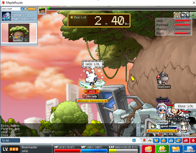 Name: Ashley In-game name: Silencer909 Age & Ethnicity: 15 / Asian Location / Timezone: Singapore +8GMT Why do you want to join Arcady?: Because you guys seems like a fun pack Do you have any friends or have you met some people from Arcady?: The best kind! How did you find us?: i saw u guy on channel 3 What do you do mostly (e.g. bossing, PQing, grinding, slacking)?: Bossing = when i get friends together. Grinding is what I do best Slacking when grinding is just too painful on my wrists f3