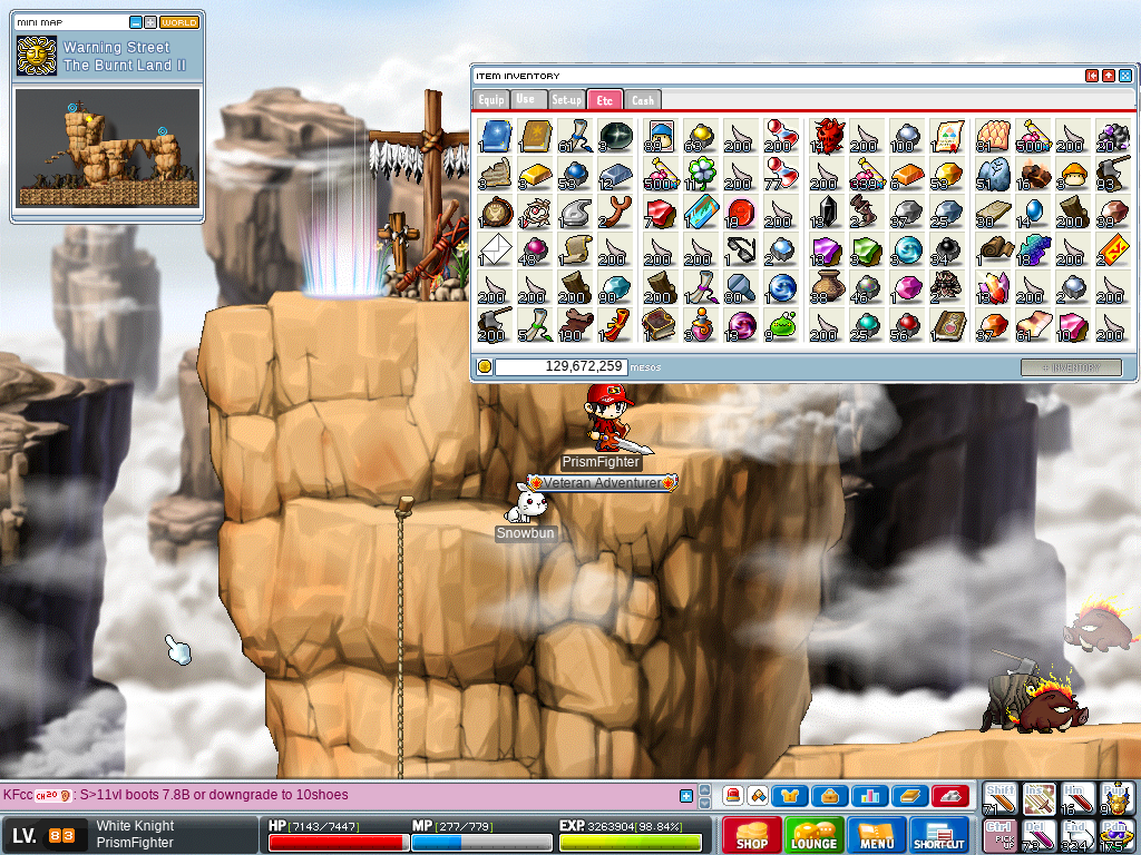 Unrelated, but I have completely filled in fire boar's entry and even got a few garnet ores. Still no glass shoe. Might try this challenge on a later date. UPDATE: I need 4 more garnets for a quest, so I have more reason to try again. UPDATE_2: I've tried, but I stopped when my equipment inventory becomes full. Do you think Arwen would accept one of the shoes? Aside from that, I got ~240 fire tusks, but one garnet ore. I also got three fire boar cards as well as a couple of diamond and mithril ores. Maybe I should count them in, too? UPDATE_3: I've tried again today, as shown by the second screenshot. Used up to three slots of fire teeth. Still no glass shoe, but at least I've got a couple of garnet ores. UPDATE_4: Tried again until I got 2 more garnet ores (I need 40 for a quest). The fire tooth couldn't reach a full item slot, though. UPDATE_5: I need dragon skins for a few quests, so I went to East Rocky Mountain VII to hunt while also trying my luck. UPDATE_6: I need dragon skins again, but this time I'm hunting in Dangerous Valley. UPDATE_7: Another unrelated case, but I have cleared the 999 cursed eye quest and even completed its book along the way, but I haven't received black bull's deed yet. I could do another variant of this challenge since I need orichalcon. UPDATE_8: Did black bull's variant until I got the item or the last ore of orichalcon I need for another quest. In the end, I got the ore, not the deed, with 257 cursed eye tails. UPDATE_9: Went back to try again. UPDATE10: Tried Nospeed for a change. At least I got all its cards along the way.
