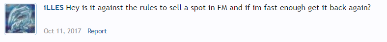 I didn't do it though lol In the public server people did that all the time ! I saw a guy do it today and he got it back and resold and the other guy didn't compalin xD Found a spot in fm 7 but still want a better one!