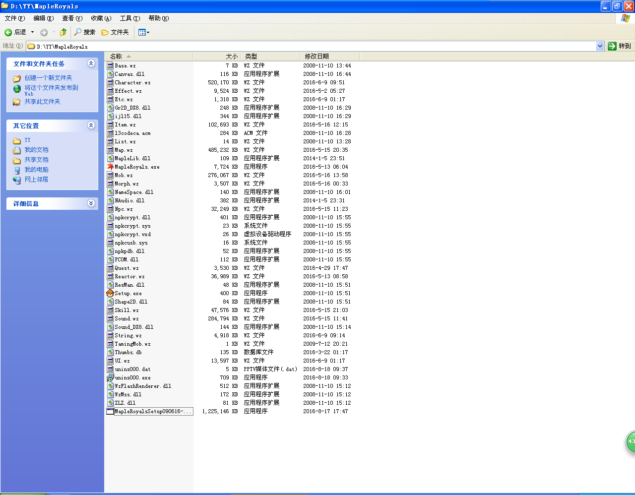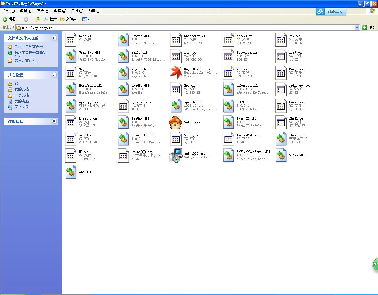 你的資料夾截圖必須包含 Mapleroyals 整個遊戲資料的所有程式,包括檔案大小、檔案日期。