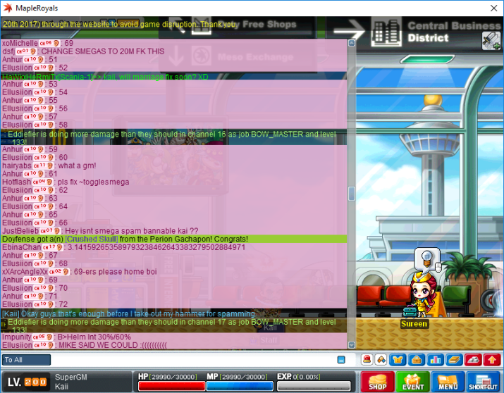 Character Name: Anhur Last thing you did: Sitting in the FM Why do you think you got banned?: Not sure Ban message when attempting to log in: Perma Banned What GM banned you (optional):