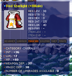I quit. Here's what I have: 28 TMA Dark Noel: s/b 1.8b - a/w 2.3b 1/1/6/0 Roa: s/b 2.7b - a/w 3.1b 33 TMA Maple Shield: s/b 3b - a/w 4b 9 INT White Raccoon Mask: s/b 800m - a/w 970m 177 TMA Elemental Wand 6: s/b 500m - a/w 800m 1/1/1/1 NO SLOTS ROA: s/b 230m a/w 330m All prices are negotiable to an extent. I prefer cash but will take CS/WS as 500m IGN:BlubbyHoly