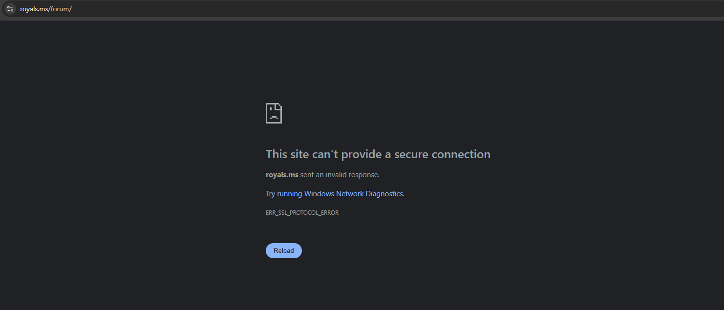 I have tried multiple browsers, even reset cookies. the issue persists even being able to respond right now is lucky cause its hit or miss if the royals.ms would even load