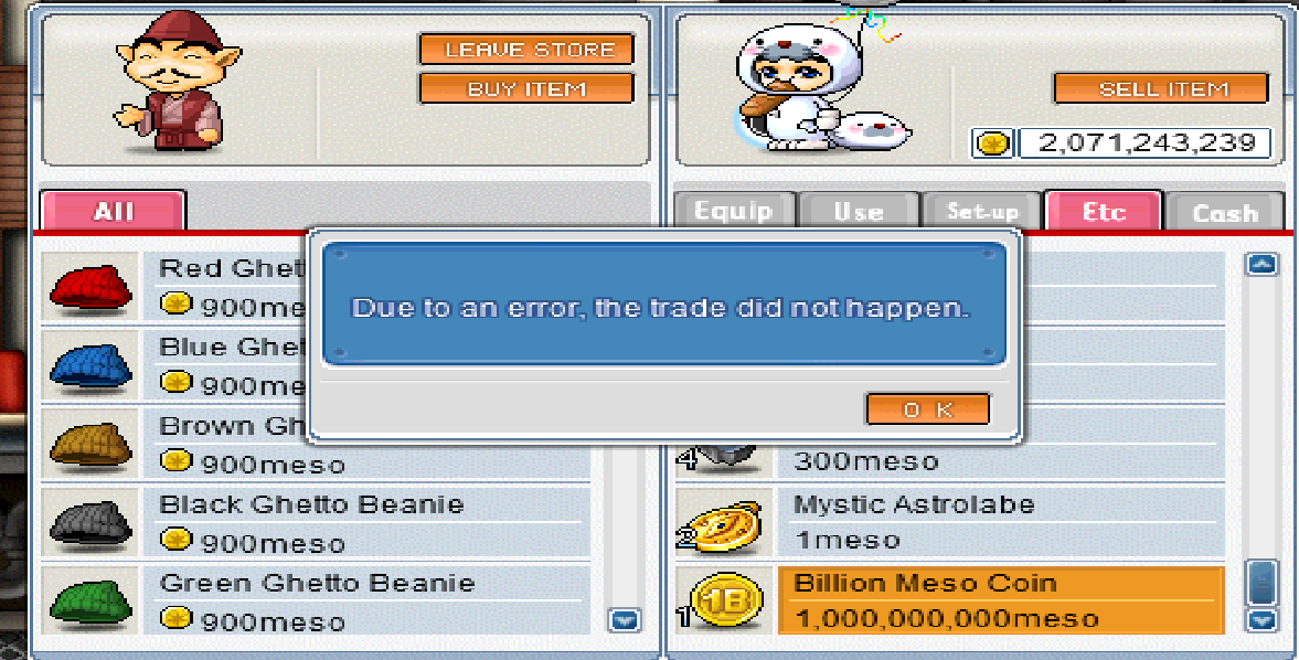 Hello, When I try to sell my 1 bil coin, I get an error message: Due to an error, the trade did not happen. I have 2, 1 worked and 1 I get that message.