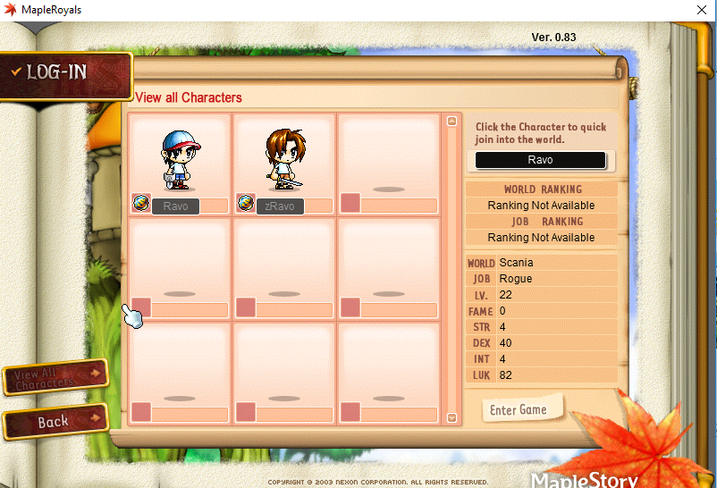 Details: I have been quited for a year and wish to come back to maple royals. I have reset my password and logged in to my account. I found that my main character, Jinno is gone but only left with my sub-character. I remember that my main character is a level70+ marauder. I tried to create a new character by using the same ign, Jinno but it showed the ign has been used. Which mean my character is still exist but does not show up in my character selection screen. Is there any way to fix this issue or it is possible to get back my character? Thank you.