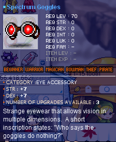 Update: Specs are currently 10dex 9str 2slots