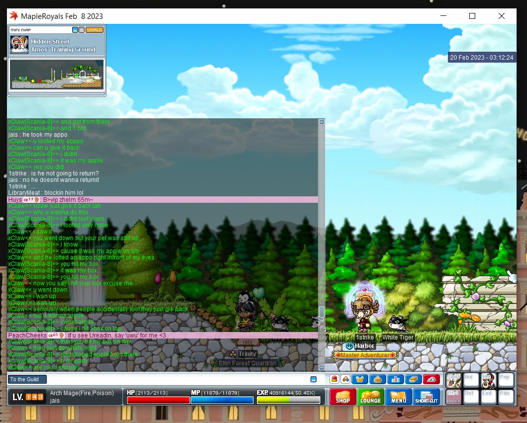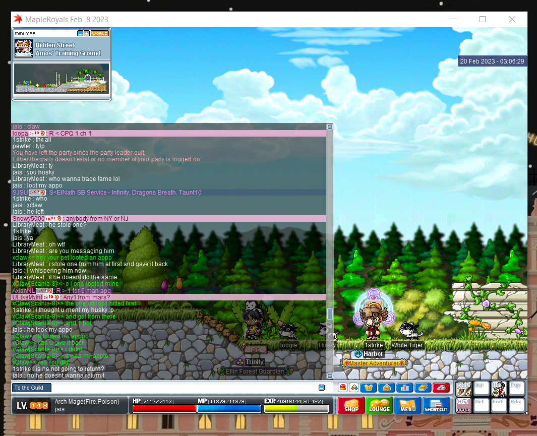 I tried to get back into the game, but the client was not cooperating with me. I tried using mobile data instead of wifi to see if it was an internet connection issue, but still could not login or I would dc right away... Also re-downloaded the client from Wiz to Img files to see if it helped, It did, but for one day only. I'd have been happy to share apples with the party, instead, right away you put me on the Community blacklist without a second thought?? I don't take apq lightly, especially during the v-day event and I would not come back to apq empty-handed, I'd always offer reimbursement (onyx apples) to the party for dc issues. https://royals.ms/forum/threads/apple-farm.190908/
