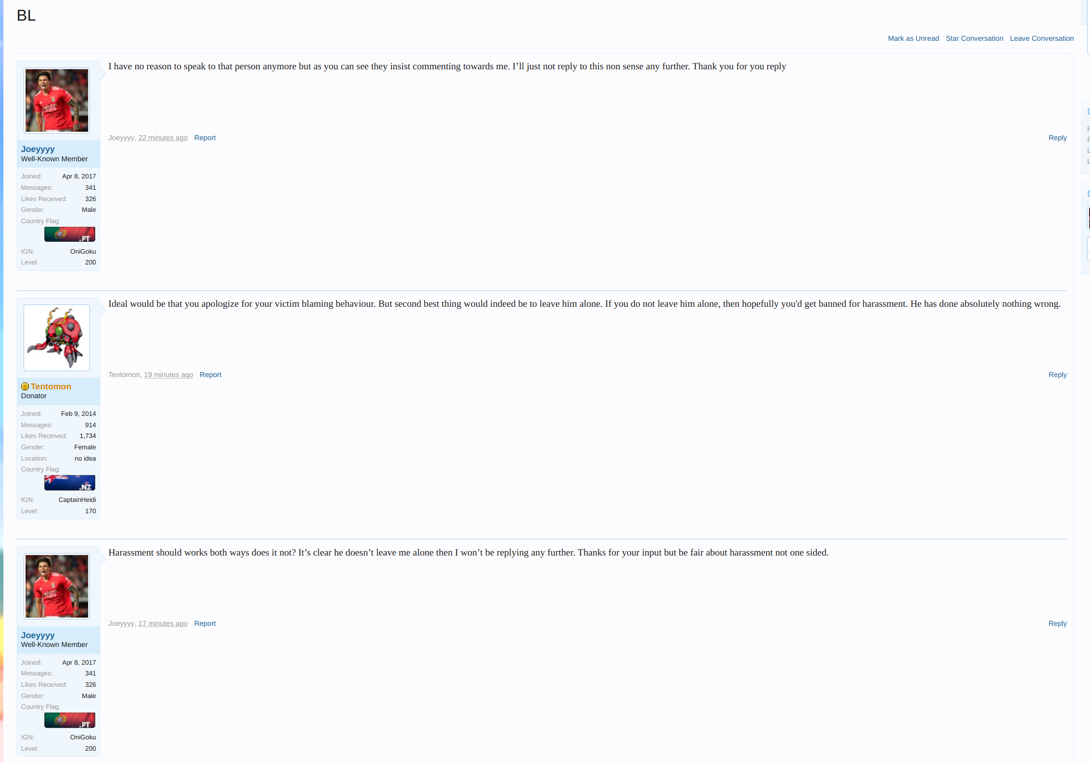 Reason: Joeyyyy DM'ed me to whinge about how Kutsilyo's words on this thread are also harassment. This is just completely ridiculous, becaue Kutsilyo is the victim in this case, defending himself against an unfair report that failed to provide the full context.It is clear he just does not get it, and his continued blaming of his victim is harassment. Sooooo