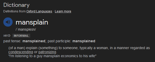 time and time again huh... show some examples maybe? or do you mean that ONE time i called you out for power tripping because you issued a full on reply ban to someone for "mansplai explaining".