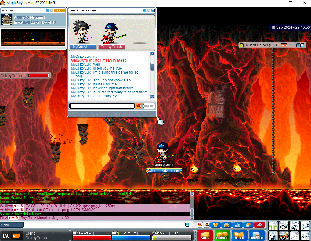 IGN: MyCrazyLuk lvl160~ NL (he has other mules, currently finding out thru alliance) Reason: APR scam conducted on new players Details: On the cool evening on the 18th of September, 2024 - I (IGN: Geniii) found myself hankering for some mesos to upgrade my doroness robe from 27int to 30int (hopefully). Around server time 22:10 UTC, I smegaed my services as a humble leech merchant, blissfully unaware of the information that would be thrust into my lap as I waited for a customer. A strange fellow by the name GalaxyCrush whispered on my screen, asking if I could perchance bestow knowledge regarding the ever-so-coveted APR; since they themselves were new to this world. I did not think much of it - many a newcomer I've helped and answered in the past - just like this young adventurer. It was only after I had let him know APRs were around 10.5-11m each. The adventurer promptly let me know that another was currently misleading him into selling his hard-earned NX/APRs - playing dumb and offering to buy them for 4m each. "A scoundrel!" I thought - and promptly resulted in the following: MyCrazyLuk had been smegaing constantly for the past 2 days offering to "help newcomers who were below level 50 - to whisper" him. He also presumably waits at zak using this account (and most likely other mules) for new players to finish the zak prequests since they are level 50 and can cash out their voting nx that have accumulated over the days. He kindly informs the unaware newbies about the voting function, and then acts like he will "help" them out by purchasing their APRs for 4 m each. He also acts like he does not know the exact prices of the APRs, saying that he just started buying them as well. (This is also a lie - since he states on the SS that he has already accumulated 62 APRs this way). I had informed the newbie to immediately take SS of the conversation, as well as informed my guild - I had felt like I had seen that IGN before. This was correct - he was part of our alliance and masters of the respective guilds/alliance kicked him immediately on me receiving these SS from the newbie. He logged off once confronted, presumably to clear his chat (or had a spasm due to a minor freakout, who knows lmfao), and tried to appeal his actions, but the SS prove his intention of scamming newbies in our community. Not only has he himself has stated in these SS that he had already "collected" 62 APRs prior to this incident, he pretends to be a beneficiary of these newer players - that scamming these victims was an act of kindness - making this situation even more deplorable. How many victims fell for his selfish and greedy scams? Im sure to anyone playing in Royals, 62 APRs is not a small amount for new players. I myself still see anything over 100m as something that is a substantial amount of money - especially since players can maybe get 2-3 APRs a day voting. That NX MyCrazyLuk has scammed off these newer players (especially since new players should be treasured and taken care of) could have been used in order for the victims to purchase pets, auto hp/mp equips, ,meso/item pickup, and other essential quality of life improvements so they may further enjoy the game. Please, if you know any other IGNs of MyCrazyLuk, dont hesistate to post here or let me know so I can update my post. If youre a new player who has been scammed from this despicable person, let me know - my ign is Geniii and I'll give u free leech whenever im free to in order to make up for your loss and to apologize on behalf of this selfish clown. Id rather that I can help in someway for you newbies rather than have yall leave or get discouraged due to falling victim. Cheers, Dan edit: I boomed my doroness…