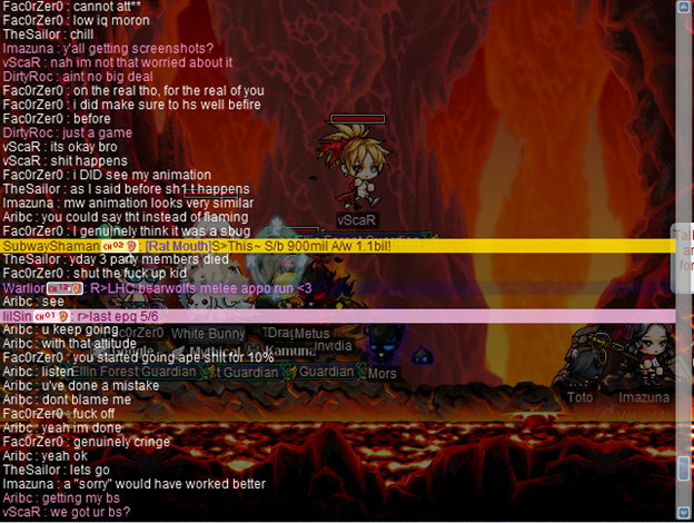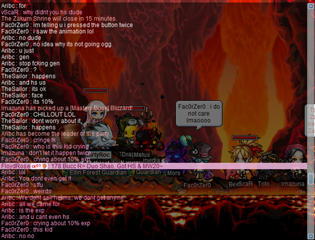 1. IGN: Henkerovski 2. REASON: Ruining Horntail run (Using game mechanic to harass weak players) 3. DETAILS: We were doing a Horntail run and Henkerovski willingly and while ignoring the party's chat attempted to continue hitting Horntail's Right hand, making the boss 'seduce' all players and subsequently killing two players (myself and a bishop) thus affecting our gameplay into not finishing the run properly. In the First screenshot my character was already dead after getting seduced by horntail, the bishop was also seduced thus dead too in the right corner. In the chat you can appreciate how Henkerovski was laughing in spanish while saying everything was funny. In the same image. the player DivineNess apologizes for the behavior of Henkerovski saying he is 'noob peruvian'. In the Second screenshot you can see in the chat we are telling him to hit heads intead since it was our last chance before hands start casting seduce on the whole party. In the third screenshot after sending a super megaphone telling everyone to be careful with that player, the player Sussudio also 'smegaed' that he indeed was a toxic player, I don't know the background about that but I hope that helps my claim.