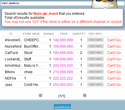 What was once thought as a cape worth getting from gacha has now got down the drain. PGCs are worth slightly more than these capes probably because of it's rarity and low level requirement. But really, what difference does it make in the long run when choosing between blackfist cape and ping gaia cape? This is the same as releasing pgc in cwkpq. Note how there's 4 pages. The first page reflects the more common ones. As time goes by, this cape definitely devalues further if it continues being this common, taking down pgc along with it. What used to be a single or double paged owl book stabilised at 300-400mil post event period has now gone down to 150mil. Expect it to go down further if nothing is changed. This equip is the least of my worries because it's the most unique equip released in cwkpq but is still worth nothing as one of my concerns. Toad is less rewarding now that all these goggles are ready for us to chaos at our disposal. Looking at these screenshots, cwkpq is looking to be less rewarding. My view on this topic has changed. It is no longer the comparison between the returns that horntail and cwk give or whatever have you, but how cwkpq is becoming more and more awful. Seems fun to run but you get items that reward you lesser and lesser by the day. So actually, the drops are too good in a way that it's too common. If you are still a firm believer that cwkpq drops are not too good, then you're right, but it still needs to be changed. I believe most of the voters who voted 'No' in the poll are frequent cwkpq runners since, initially from this thread, they rather go against my views on nerfing the drops mentioned and want to maintain the attractiveness of cwkpq. Now just ponder for a bit and look at the situation from the screenshots above. Something needs to be done about the drops for cwkpq. In my honest opinion, all I see in the near future is how people don't feel like doing cwkpq anymore because doing it to get bf cape is obviously not worth at all and doing it for blizzard 30 that's just senseless, of which assumes that the drop remains this way. Doing it for spectrum goggles, taos, demon elixers etc are the only reasons worth doing cwkpq for. One of the posts mentioned above would like to keep cwkpq the way it is since it gives unpopular classes a way to generate some income. With the situation blatantly shown in the screenshots, the income generation point explained above will eventually mean little to nothing at all. Just like GPQ, this pq could possibly suffer the same fate whereby the only items players are probably eyeing for in the pq are spec goggles, demon elixers and taos (just like ifrit30 and ass30 where you can't get anywhere else). What should carefully be considered is how the pq can maintain it's attractiveness, providing the server with the supplies obtainable from this pq while also making sure that the demand for the items generally exceed the supply entering the market. By doing so, the pq is worth doing due to the items having a higher value because of the demand while the rarity of such items should not deter players from wanting to do the quest. The attractiveness part of the pq need not only be limited to the bonus stage or the MoN, it can come in the form of Exp, other untradeable equips, untradeable potions etc that CANNOT enter the market but are still appealing to players. I will be placing this post as an update the thread since I'm taking a different approach into convincing the community that the drops need to be adjusted. For those who have already voted, consider this update I have made and change your votes if you have to. I will also be changing the question in the poll to 'CWKPQ drops need to be changed/adjusted'. I was not able to foresee such a change and also my view on this topic changing, and for that I do apologise.