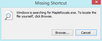 I successfully downloaded the MapleRoyalsSetup190717.exe for Windows through Google Drive and went through it, checking the option to create a desktop shortcut. However, this message (picture included) popped up when I tried to open Maple Royals. I've gone through setup multiple times to redownload everything and restarted my computer, but the problem still persists. What should I do?