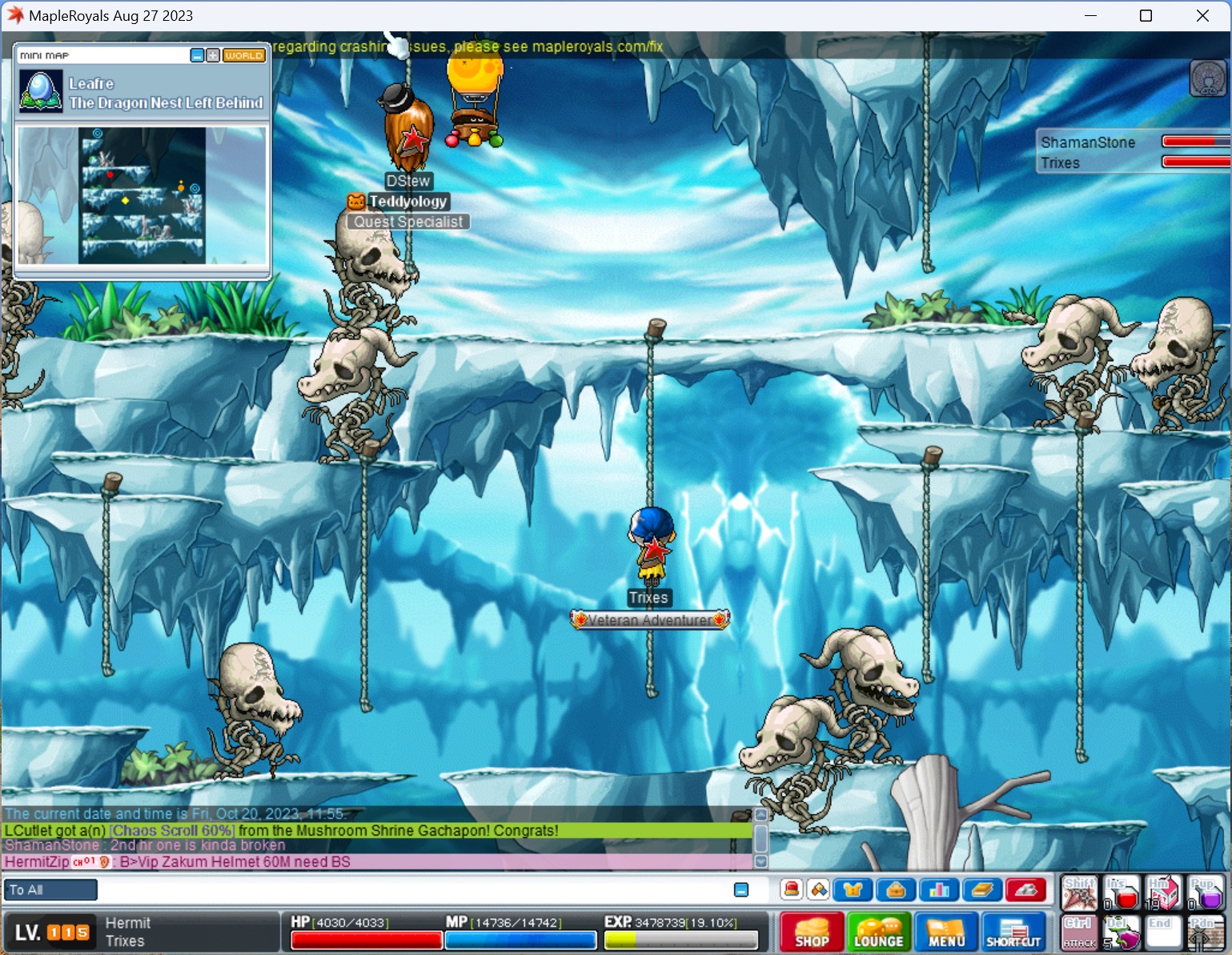 25 Aug 2025 Service Closed The shutdown has been decided due to my objective and motivation in the game. Thank you everyone who has bought my ellin prequest service. During this 1+ year, the fastest session took ~1:25 hr finish time and was done with full package from a buyer (ign: *e*u*) bringing his 1 character. The slowest session took ~2:15 hr finish time and was done with full package from 2 buyers who purchased together and each of them brought 1 character. The 2-mage method was initially created, used, and improved throughout my own 3rd - 8th quest virtuoso medal grinding. Nothing super fancy but I'm glad that I had a chance to share it with you. Spoiler: Ellin Forest prequest service Ellin Forest prequest service (Note: to enter ellin forest, pap prequest needs to be done until you get access to boss room, you don't need to defeat it) price: 240m + 80m x N (total number of characters, up to 4 characters) time cost: 1.5~2 hr Contents- 250x Moss Snail Shell - 200x Black Mushroom Spore - 200x Rubble - Tree Rod 0/999 / eta: 14 minutes - Primitive Boar 0/999 / eta: 16 minutes - Chao 0/1, 200x Tough Leather, 1x Chao's Tusk - Ancient Fairy 0/999, Shining Fairy 0/999 / eta: 26 minutes (12 minutes to 750/999 Ancient Fairy) - Ephenia 0/1 - [Optional] 200x Tree Trunk - [Optional] 100x Forest Stone (quest item, buyers need to loot by themselves) - [Optional] Mossy Mushroom 0/999 / eta: 14-16mins * Optional contents: these 3 quests branch from the main questline, they do NOT belong to prequest(to access to EPQ, medal, etc) but can be fulfilled for the questline completion. Buyer gets 40m off if choose not to do the 999 Mushroom quest. * For better speed of completion, in 999 fairy quest the party need to relocate map after 750/999 Ancient Fairy is reached. Spoiler: ellin prequest cheatsheet Code: Yuris -> Loha -> Tess (x200 shell) -> Loha -> Athena pierce -> Perzen ----> [Optional] Perzen (x100 Forest Stone) -> Perzen ___________________________________________________________________| ↓ Yuris -> Ellin (x50 shell) -> Ellin -> Yuris ----> [Optional] Tess (x200 trunk) -> Tess __________________________________________| ↓ Athena pierce -> Shadrion (999 tree rod) -> Athena pierce -----> Athena pierce -> 【[Optional] Lohd (999 mushroom) -> Lohd】________________________________________________ _______________________________________________________| | ↓ | Loha -> Sion -> Loha -> Perzen (x200 spore) -> Perzen ----> Sion -> Rius (x200 rubble) -> Rius ----> Loha -> Kanderune (999 boar) -> Kanderune (chao) -> Kanderune | _________________________________________________________________________________________________________________________________________________________| | ↓ | Loha ----> Yuris -> Ellin -> Athena pierce -> Perzen (999 fairy) -> Perzen (ephenia) -> Perzen ----> Athena pierce [END] | ↑_____________________________________________________________________________________________________| Spoiler: ellin prequest cheatsheet v2.1 Code: Yuris Loha Tess (x200 shell) Loha Athena pierce Perzen ----> [Optional] Perzen (x100 Forest Stone) -> Perzen ↓ Yuris Ellin (x50 shell) Ellin Yuris ----> [Optional] Tess (x200 trunk) -> Tess ↓ Athena pierce Shadrion (999 tree rod) Athena pierce -----> Athena pierce -> 【[Optional] Lohd (999 mushroom) -> Lohd】 | ↓ | Loha | Sion | Loha | Perzen (x200 spore) | Perzen | | ↓ | Sion | Rius (x200 rubble) | Rius | | ↓ | Loha | Kanderune (999 boar) | Kanderune (chao) | Kanderune | Loha | | ↓ | Yuris | Ellin | Athena pierce | Perzen (999 fairy) | ↓ <---------------------------------- Perzen (ephenia) Perzen ↓ Athena pierce [END] -------------- Spoiler: sold Skele leech (0224: Close, going to level this bishop) MW20 Telecast Lv142 BS - 142m/hr dstew skele leech calculator forum ver sold in game for 360m 9 pgc sold for 1.2b 240130 130/4dex Dark Nisrock sold for 3.3b (2.5b + 125 nisrock) 240130 8/16/19/0 Talking Witch Hat sold for 555m in game 240701 190tma wand 7 sold for 3b (SS from https://royals.ms/forum/threads/s-ele-wand-7-tma190.232839) 7/101/49 pyrope spear sold for 1.8b in game 240717 18/132 Devil's Sunrise sold for 1.7b 14/11 6acc blue dragon armor sold for 1.33b https://royals.ms/forum/threads/s-10-5-bfc-8-14-garina-8-13-21-16-witch-hat.230919/ https://royals.ms/forum/threads/s-rc-13-80--12-71-4-slots.231906/ https://royals.ms/forum/threads/b-14-15-shoes-rs-fs-vl.230885/ https://royals.ms/forum/threads/t-teamwork-bow-xbow-bullet-for-star.232132/ https://royals.ms/forum/threads/b-118-kc.240901/ https://royals.ms/forum/threads/s-18-22-warrior-shield-14-106-kc.241337/ https://royals.ms/forum/threads/s-16-pgc.241357/ https://royals.ms/forum/threads/s-8wa-rs-peppermint-lollipop-stacks.243857/ Stump 400m sold in game Coco Boss Chair sold for 50m Giant Ducky Chair sold for 50m Pink Bean's Magic Chair sold for 50m Presidential Donkey Chair sold in game for 90m Presidential Elephant Chair sold in game for 70m Fortune Chair - sold for 22m No Fear Chair sold for 77m Code of Hammurabi Chair - sold for 66m Coco Boss Chair sold for 44m Coco Boss Chair sold for 44m Baby Dragon Swing sold for 55m Bright Night Owl Chair sold for 66m Elize's Lap sold for 66m Merlion Chair sold for 77m Giant Ducky Chair sold for 122m Oh My Empress sold for 122m Carrot Chair sold for 111m Fuzzy Kitty Chair sold for 177m Chivalrous Chair sold Pointy-Ear Wooden Chair sold for 33m Cadeira de Morceguinho sold for 33m Oh My Empress sold for 70m Dragon Skull Chair sold for 100m Fish Tank Chair sold for 255m Bubble Bath Chair sold for 222m Dragon Chair (Abyss) sold for 277m Mermaid's Coral Reef Runner sold for 500m Bus Stop Chair sold for 222m Pimp Chair sold for 800m Ryko Chair sold for 777m Rowdy Chair sold for 450m Magic Book Chair sold for 1500m (3 WS) 03/23 Event items Oversized Beret (Pink) - 300m Spoiler: picture Pimp Chalice - 250m Little Devil Label Ring - 30m Red Rose Chat&Label Ring - 40m/set Spoiler: picture Ghost Balloon - 20m Aloha Flower Accessory - 40m Red La