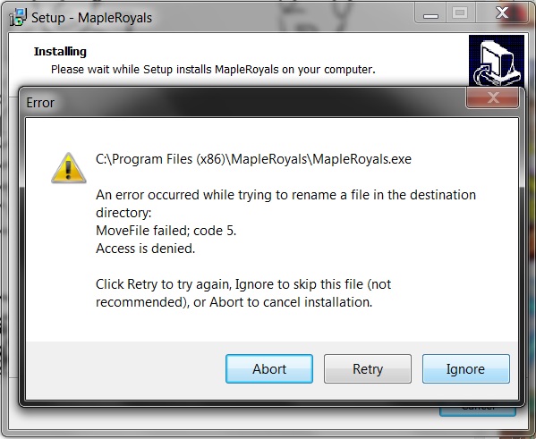 Hey MapleRoyal People, I have been trying to download mapleroyals however I keep getting the same error code when trying to install the files. Could someone please help me with what to do? Thanks in advance!