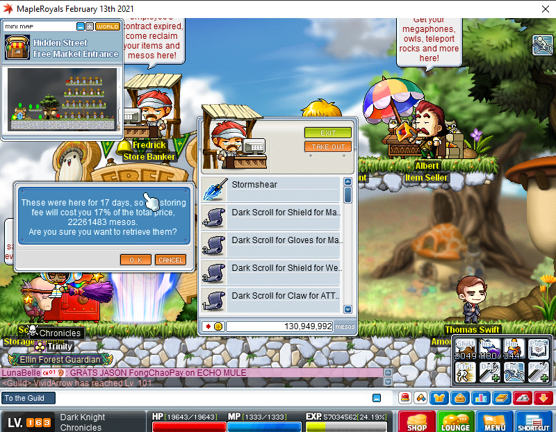 Hello! I know the title may be confusing but here im going to try and explain it the best way possible. IGN: Chronicles Problem: I had a store before the security breach happened, then got banned and when I came back the storing fee taxes is 17%. Details: Like I said, my character Chronicles got banned, so my taxes kept going up and up and I couldnt collect the money before the security breach. I was told by an admin to make a thread that way maybe someone could help me. Im going to attach a screenshot of it so theres more proof!