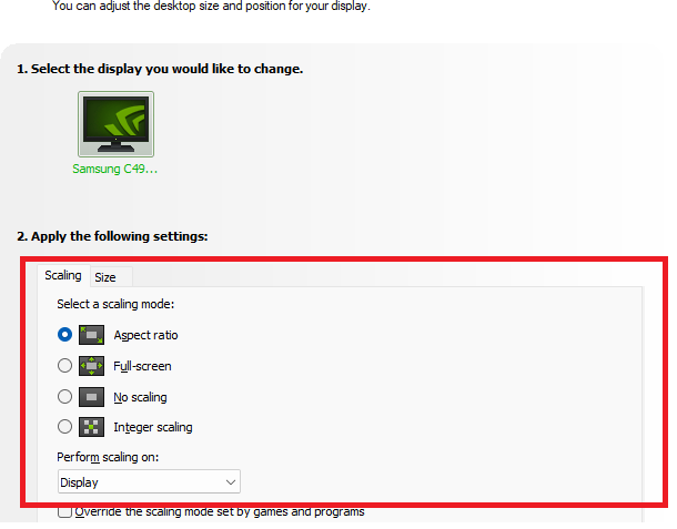 This is not an ingame issue, but rather how your display, GPU decides to scale the application. If you are using NVIDIA GPU, the problem can be solved going to the NVIDA Control Panel -> Adjust desktop size and position Mess around with these settings, and it should get you where you want. Depending on the system that you are playing the game, might have to adjust different settings but the general procedure is the same.