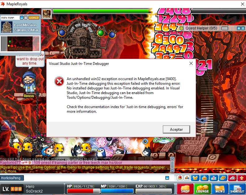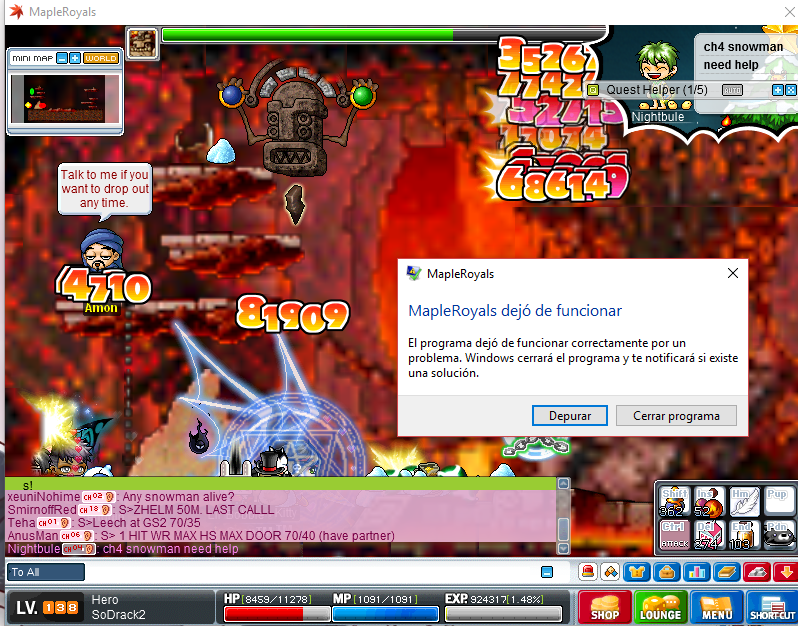 Maplestory stops working in zakum 3rd body Help plz i can't loot my advanced combo