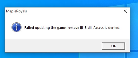 You may also try deleting the old exe and rename "_updated" file to MapleRoyals.exe