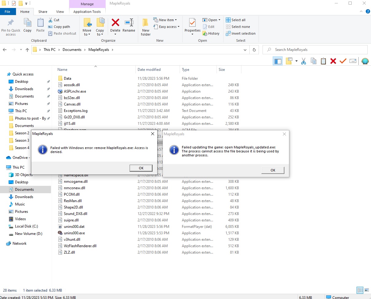 Try restart your PC 1st before launching Royals I think the previous launch of the client at C-drive is hindering the current files at Documents
