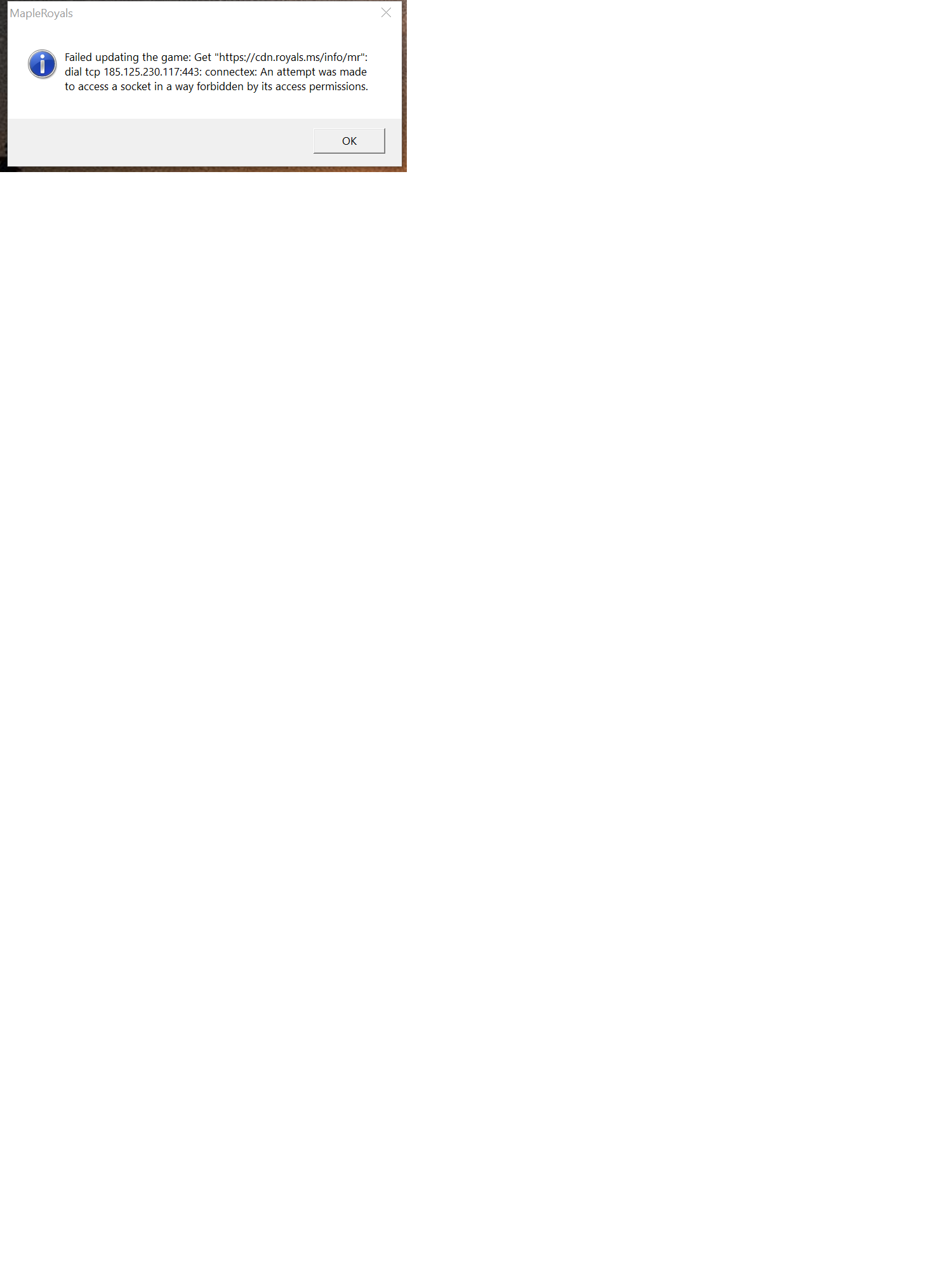 Just re-dled the game after a few years but it's giving me the error message "Failed updating the game: Get "https://cdn.royals.ms/info/mr" : dial tcp