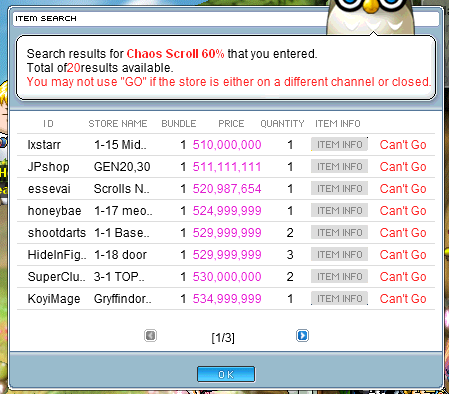 Then I see them selling all their loots from hacks for a cheap ass price: 10% earring int scrolls, 60% helm dex scrolls, gold tooth, etc. All these are the things I try with my 5 mages + looter NL to farm for, and they sell it for dirt cheap lowest prices owling every hour or two to keep the lowest price as possible with 10+ stacks of goods in their inventory. What do I get from my farming? NOTHING but wasting my nx on shop and my time.