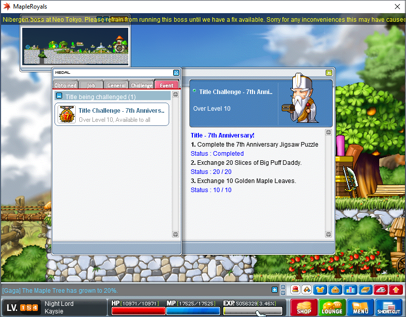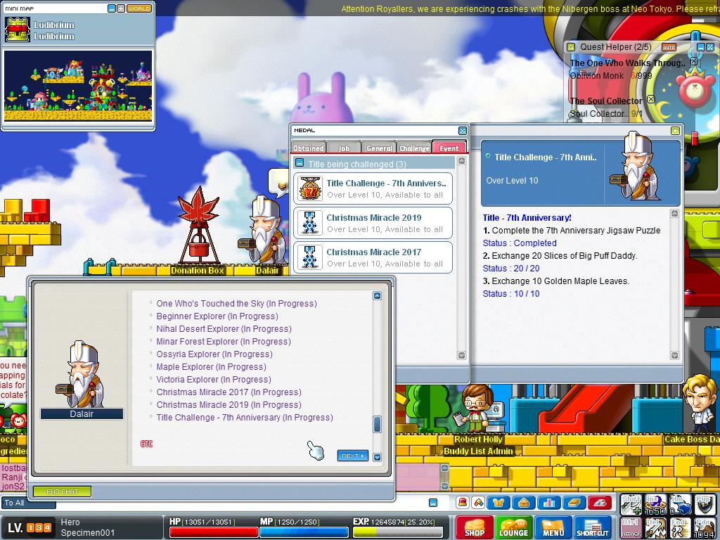 IGN: Kaysie Problem: Unable to obtain 7th anniversary medal Details: completed the 3 quest challenge but still unable to receive the medal from Dalair