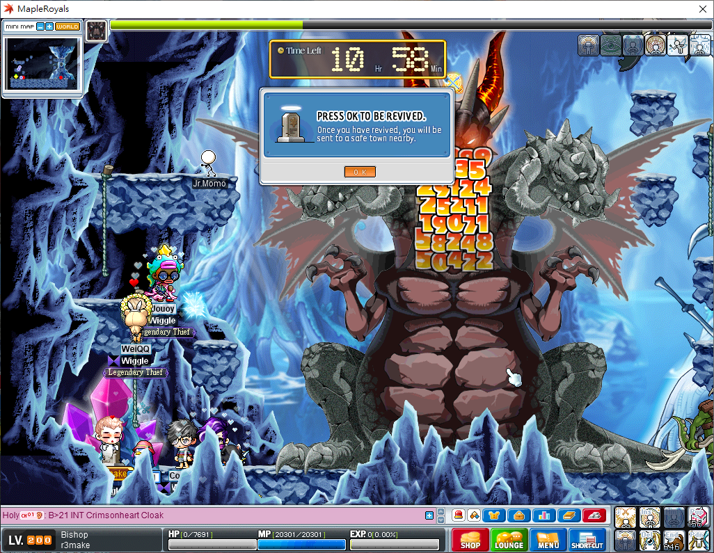 I think it has less to do with infinity (in fact probably nothing at all to do with infinity) and more to do with the game simply not registering that you are getting hit to 1 hp. It seems to think that you get hit to 80% of your hp (mg replaces 80% dmg to hp using mp) instead of 1 hp, and since it doesn’t think you are under the 80% hp it does not pot for hp unless you have set hp alert to over 80%. Also, Joon, you are using PE for both hp and mp potions in your videos so even if you say it works perfectly with both hp/mp pots on (in the first video) it might actually only activate your mp alert setting and not your hp (it’s just that pe heals hp as well so it looks like it works?) Anyway, my assumption is: the damage taken from the 1/1 hit is still calculated normally as 10k (assume your hp is 10k for simplicity, with 30k mp), 2k goes to hp and 8k to mp. If your hp alert is set to say, 7k hp, it won’t pot as it only registers you as being damaged to 8k hp. The actual 1/1 that comes after does lower your hp but doesn’t trigger any hp alert, for whatever reason, even though it triggers mp alert. In your video you are testing mp/hp pots both with PE, that means you pot to 100% hp all the time, so 1/1 would bring you to 80% hp. That’s why you have to set the hp alert for the amount you mentioned. You mentioned a friend that made the hp heal work with a lower hp alert setting – did he use PE as well, or did he use some other pots, e.g. ginger ale, or was just not at full hp? If he was at, say, 75% hp then 1/1 would possibly make the game register it as hitting him to 60% (80% of 75%) and it would trigger the hp alert at a lower setting. Either that or… he has a low mp pool such that it cannot take damage equal to 80% of his hp, so he’s actually dealt more than 20% dmg in hp, hence it triggers the lower hp alert setting. Or… it’s some other reason I don’t know ;_; BTW you mentioned that putting hp alert high prioritizes hp alert over mp alert, but when I tried taking 1/1 damage with cheese for hp (+4k hp) and watermelon for mp(+1k hp/mp0, I healed to 5k hp and 1k hp, meaning both hp and mp alert settings activated. That doesn’t mean you are definitely wrong though, it could be that it prioritizes hp alert and ignores mp alert, but since auto hp works only when it senses that you receive damage whereas mp settings are a bit iffy (when you get damaged, or even when you cast a skill without being damaged, it activates – doesn’t work on HT mana drain tho), it triggers only the hp alert when it registers the damage followed by the mp alert when you get the real 1/1. Or maybe it just triggers both normally, idk. Maybe how the 1/1 works now is that it does the 20% hp, 80% mp thing before bringing you to 1/1 hp/mp, meaning it’s 2 separate things but at the same time. Only the 20/80 thing registers as damage done to your hp, so the actual 1/1 after only triggers mp alert (because auto mp is just weird like that). What seems to makes hp alert work: 1) Setting your hp alert above whatever % Joon mentioned so any 1/1 will trigger hp alert. 2) Having really little mp so that most of the dmg cannot be absorbed by mp using mg, hence your hp is lower after the first 1hp instance and it triggers the hp setting even below 80% alert setting. Don’t do this, there’s no point in using mg then, also you’re just reducing the amount damage you can tank. 3) Not being at full hp when you’re being hit with 1/1. (unsure) If you’re below 75% health 60% hp alert would trigger. If you’re below 60% health 48% hp will trigger alert, etc. (I’m not super sure about the numbers working this way but hp alert definitely works at a lower number… if you hp% is lower at the time of the hit too. This is kinda useless, just set your hp alert settings to above 80%, you’re not a drk trying to zerk here, plus you’re reducing the amount of damage you can tank again. Or do this: 1) Wash to 10k hp 2) Never use mg again 3) ??? 4) Profit tldr; idk what's going on but fix this please so I can save pots kthx