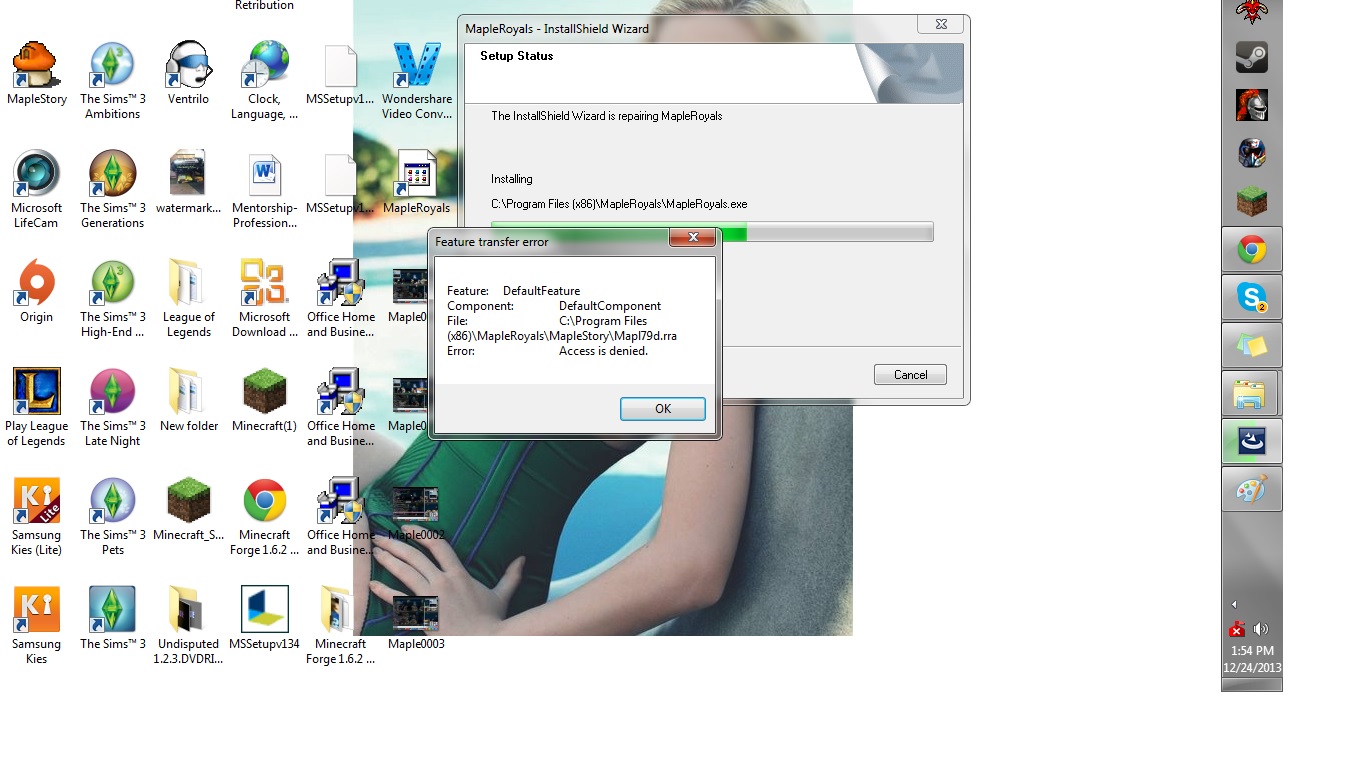Hey all, I've read the stickies and i couldn't find my problem in there at all.. So, I download MR, everything is hunky-dory, I play, everything is peachy. I log out, turn my computer off. I turn my computer back on, and attempt to open the MR short-cut file, only to find, that it has been deleted from my computer. So, I go to the set-up file i have, and repair it. I've been doing this since I started playing. Now, it won't let me even repair the file. It keeps telling me that the access is denied, I've tried running it as admin, it still does the same thing. It also pops up on my anti-virus as a very harmful trojan, I'm assuming it's my anti-virus being dumb, because I haven't heard anything about this game being a virus. But it's getting frustrating. I have tried re-downloading the game - it took me 3 hours both times I had to re-download it. I am not computer savy, and my boyfriend who is, can't figure out why it's being so difficult.. I just wanna play If anyone can help me, that'd be awesome.. This is what it tells me :