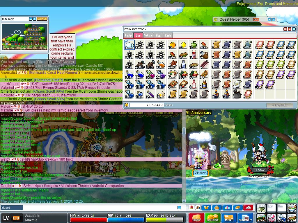 Ign : maxmie problem : GFA 100% didnt appear in my inventory after i exchanged cake piece Details : i exchanged cake piece after the cake boss at 1/8/2020 12:25 (servertime) and it has written a message that says i've gotten 50 candles and 1 GFA 100% but the GFA didnt appear in my use inventory even though i had about 6 slots of empty slots left in my USE tab. Please help me gm... thank you =)