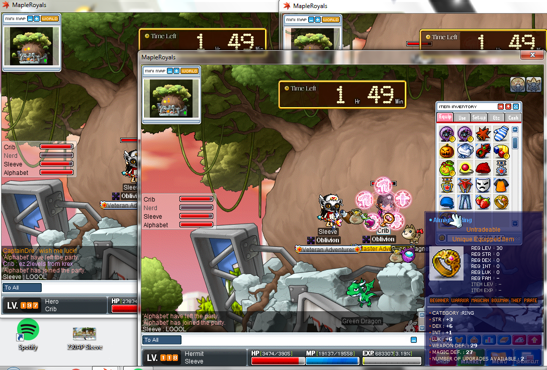 No pics, but I finally killed bigfoot! It took many deaths and many failed pins, but I did it. Got me about 21%. I did it with a mediocre maple cannon shooter since I can't scroll a str overall (bc scrolling is disabled) which means I don't have enough str to equip a concerto or dragon revolver.