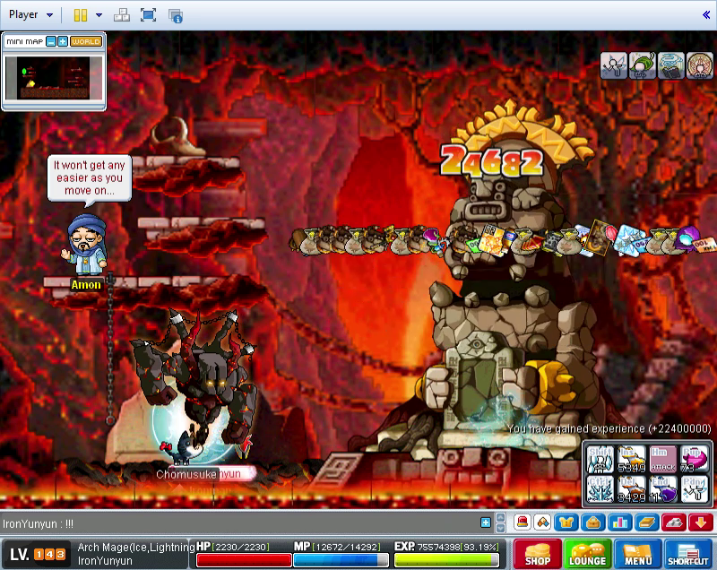 Today, I tackled the hardest challenge i set for myself when i started my ironman journy, a solo zakum run. After 6 reaaaaaaaaaaaaaaaallly long hours of casting chain lightning endlessly and almost dying 10 times because mobs tried to kick me into zakum, I fucking slayed that asshole! Sadly, the end result of the final zhelm was just 28 int 13 luk, but it's still better than the 16 int bandana i was rocking before that fight. For all of you who want proof of this almost 6 hours long run, i have recorded THE ENTIRE THING I'll render it and upload it to youtube tomorrow hopefully, then upload it on the Ironman thread, so stay tuned! UPDATE: The videos are up! you can watch them on the ironman thread right now