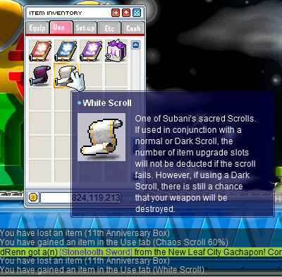 2000 anniversary boxes Results: 20 x 14 x 203 x 5,000 NX card 633 x 1,000 NX card Too many pyropes Video (no audio) Gach result: Spoiler Spoiler: also got this from a treepq box