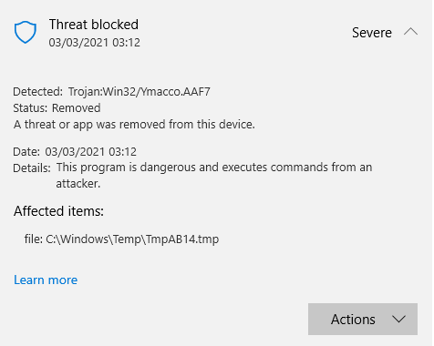 darn, I uninstalled royals since then so I can't really provide a screenshot. for windows defender, it just popped up and i can see that it quarantined something in my C/Windows/Temp folder..