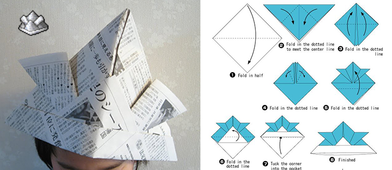 Newspaper Hat is based on an origami samurai helmet.