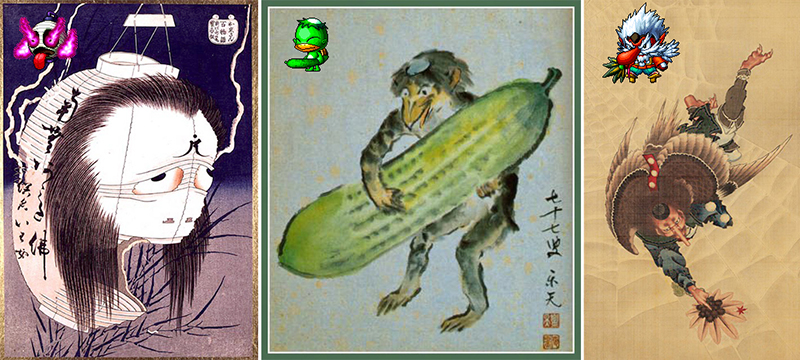 Kappa (河童) uses cucumber as a weapon, as this is their favorite food.