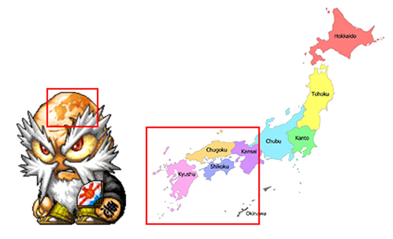 The top head marking from The Boss is actually the south region of the Japan map.