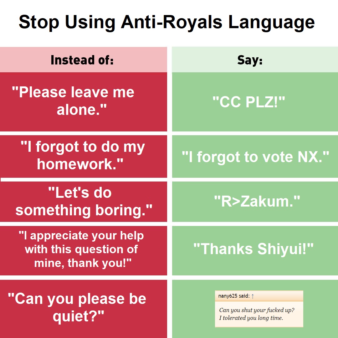 - Brother - Friend - GF/BF - Sister Spoiler: - Wife https://royals.ms/forum/threads/id-deleted-or-blocked-from-connection.130952/ Spoiler: - Cousin https://royals.ms/forum/threads/uhhh.131709/ Spoiler: monkaS