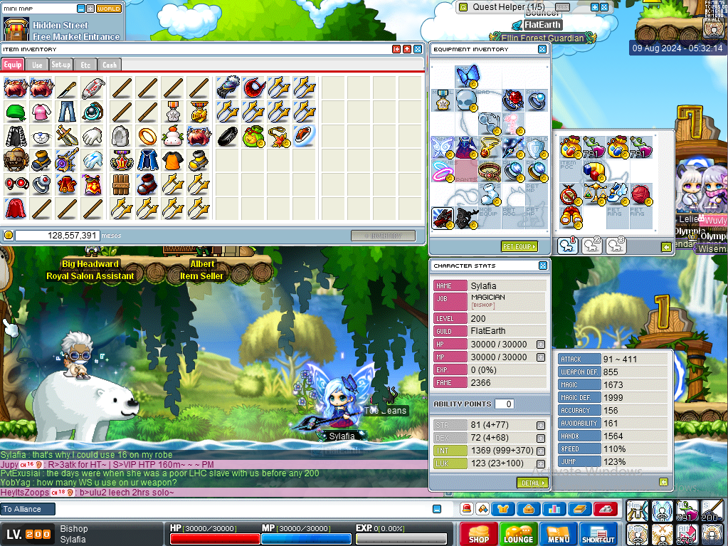 Here's the uncropped screenshot taken from the vid. Also messaged Cynn the vid link privately. For those wondering on gear: - 31 int 19 luk Targa Hat (LUK) - 7 int 7 luk Quest Virtuoso - 22 tma (11 int 11 ma) Maple Leaf - 6 int 6 luk Ifia's Ring - 8 int 6 luk Circle of Ancient Thought - 71 tma (28 int 43 ma) 1 luk Element Pierce - 21 tma (11 int 10 ma) White Raccoon Mask - 13 int 6 luk Crimsonheart Cloak - 64 int 10 luk Blue Czar - 23 int 21 luk Horntail Necklace - 193 tma (21 int 172 ma) Elemental Wand 6 - 26 tma (9 int 17 ma) Maple Shield - 8 int 6 luk Almighty Ring - 6 int 6 luk Ring of Alchemist - 24 tma (15 int 9 ma) 7 luk Von Leon's Belt - 44 tma (15 int 29 ma) Flamekeeper Cordon - 41 tma (21 int 20 ma) Brown Lapiz Sandals