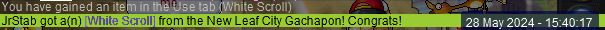 Here is the bug i have encountered. 1) I have received White Scroll from Gacha. 2) Storage NPC has One White Scroll stored previously 3) Attempt to store new attainted White Scroll 4) Received Stored message 5) White Scroll remains as One and not stacked to Two