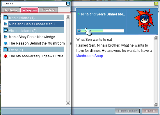 im not finish the [Nina and Sen] question and i leave the question zone i can never finish it? when i click forfeit it the question its not disappear it still in my question list Any chance can i finish it or lets disappear in my question list?