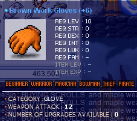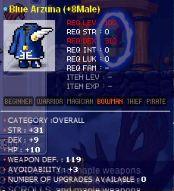 Things have been piling up for the past few months, trying to clear out the inventory. Buyer covers tax. Accept bil coins/mesos/cs and ws at 400m ea. Lmk if any price seems unreasonable, haven't been online in a while. 3 atk 6 slot bwg (got 3) s/b: 1.5b a/w: 1.7b 12 atk 0 slot bwg (just 1) s/b: 240m a/w: 280m 40 stat male bm overall (31str 9dex) s/b: 550m a/w: 650m 26 int female robe s/b: 500m a/w: 575m Perfect clean concerto s/b: 475m a/w 525m 110 atk claymore s/b: 250m a/w: 300m This chair (got 4) 75m ea cilbis 250m ea (got 5) Also got like 5 mummy masks, I'll sell for 30m ea
