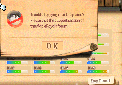 Yo tengo un problema , solo puedo entrar hasta la seleccion de personajes y despues me desconecta , dice que no puedo registrarme en el servidor , Soy de Perú y soy un jugador nuevo . Hice todo lo posible para reestablecer mi coneccion al Maple pero sigo sin respuesta alguna.