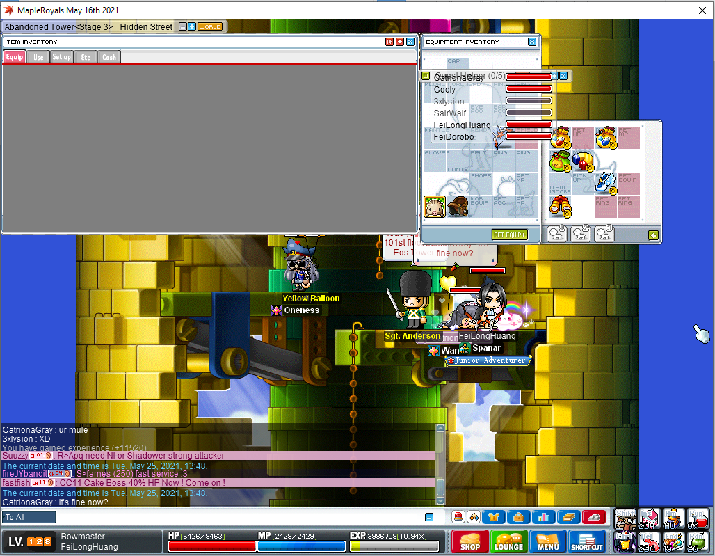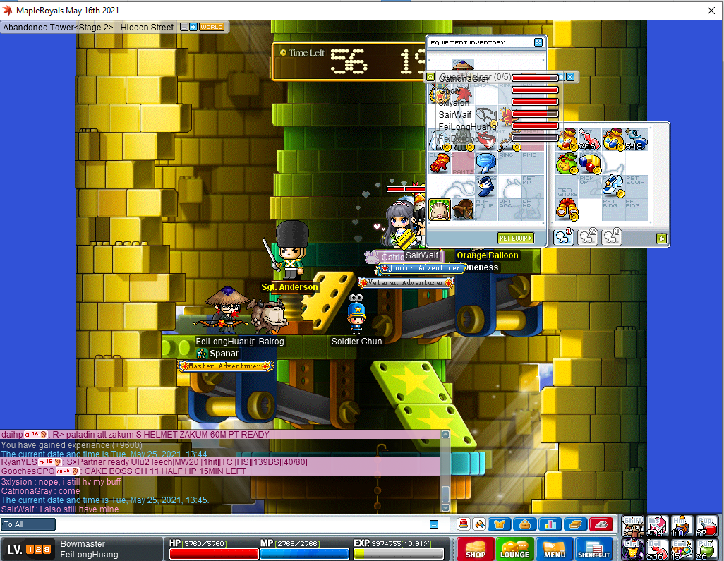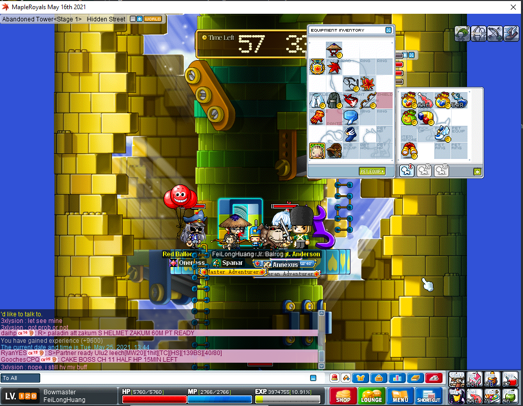 @Dave Deviluke directed me here from discord. To MapleRoyals staffs, I have similar experience as OP. First notice this after the latest 72.1 mini-patch. Using 1024x768 client. Details as follows: Affected character: FeiLongHuang, Bowmaster 128 Location: Ludi PQ (haven't tested on other PQs yet) What happened: Within PQ environment, whenever there's a change in map location for the affected character (even within the same stage but different portal location), the said character will lose any buffs it has (including self buff and party buff). Examples: From stage 1 map entering stage 2 map: Spoiler Before After From stage 2 map entering stage 3 map, most equips removed Spoiler Before After Other information: Controlling other character via multi-client on the same computer, entering the same PQ instance. Not affected in anyway. Example in the image above is FeiDorobo and other players, only FeiLongHuang character affected. - Could not identify the exact cause. - Suspicion: Something with the patch content? Before patch, this bug is not present (at least for me) - Haven't tried: Using 800x600 client if it replicates the situation If more information or testing is needed from me, do let me know. I'll see what I can help on my side.