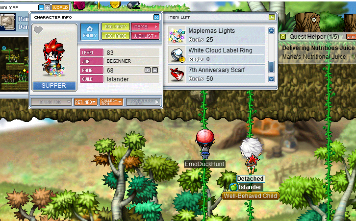 Now I'm not tryna make trouble here but found a level 83 and a level 55 here on maple island while doing the HunterXHunter challenge XD these some pros Edit: I was unaware there was a whole challenge to level up on mapleisland lol this is awesome