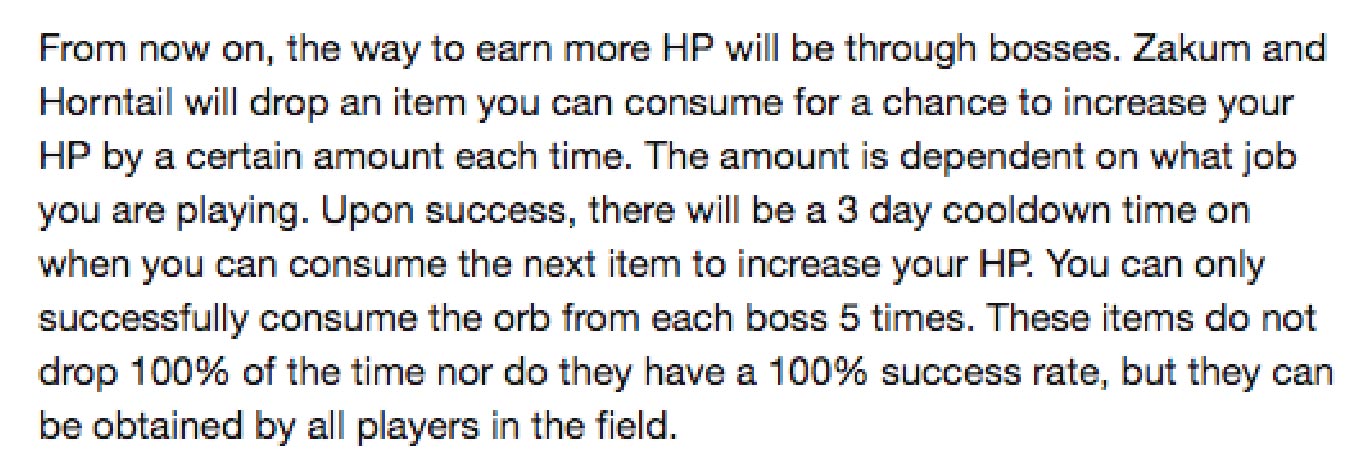 From my knowledge, HP washing was an unintentional feature and Nexon knowingly kept it? KMS seems to patch it out in 2017. For me, I believe there is room for HP washing to exist on this server. I also like the path of seeking external ways of gaining HP similar to Spring of Water and HP gears (Ergoth medal, Blackfist Cape, Dojo Belt) because it feels like an authentic journey we will take. Maybe in future updates completing a certain number of PQs or participating in community events can increase your HP? So HP washing becomes more of a social thing than a solo activity.