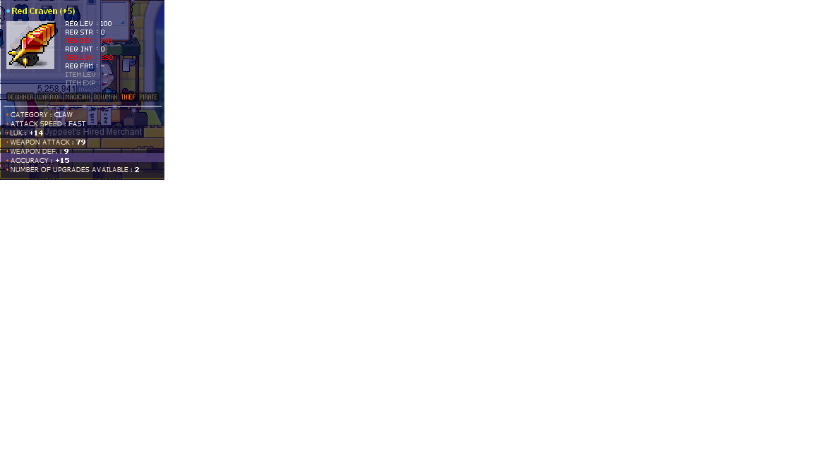 S> Red Craven 79WA/ 14LUK, 2 slots.