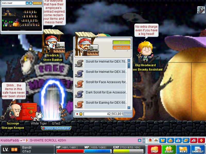 IGN: GTect Problem: Fred took my mesos cos I was stuck Details: Basically, around 3-4 days ago, i got stuck in the cash shop on my main character LTect and at that time, my bandit, GTect opened up a merchant store. Then, since i wasnt able to log in for the next few days, i was naturally unable to close the store, or collect the items from fredrick. This resulted in 2% of the total amount of mesos i earned from the store to be deducted cos the items were in there for 2 days, which is 851276 mesos. During that time, i contacted GM Charlie, and he told me that if i provided sufficient evidence, i would get a refund on the mesos lost through the tax. He also helped me by taking a screenshot as evidence of me being stuck in the cash shop. I understand that like 850k mesos isnt really that much mesos, but its still enough for me to ask for a refund, considering that im trying earn enough money to get gen 20. so every meso counts. This is the screenshot that Charlie took: This are the screenshots I took:
